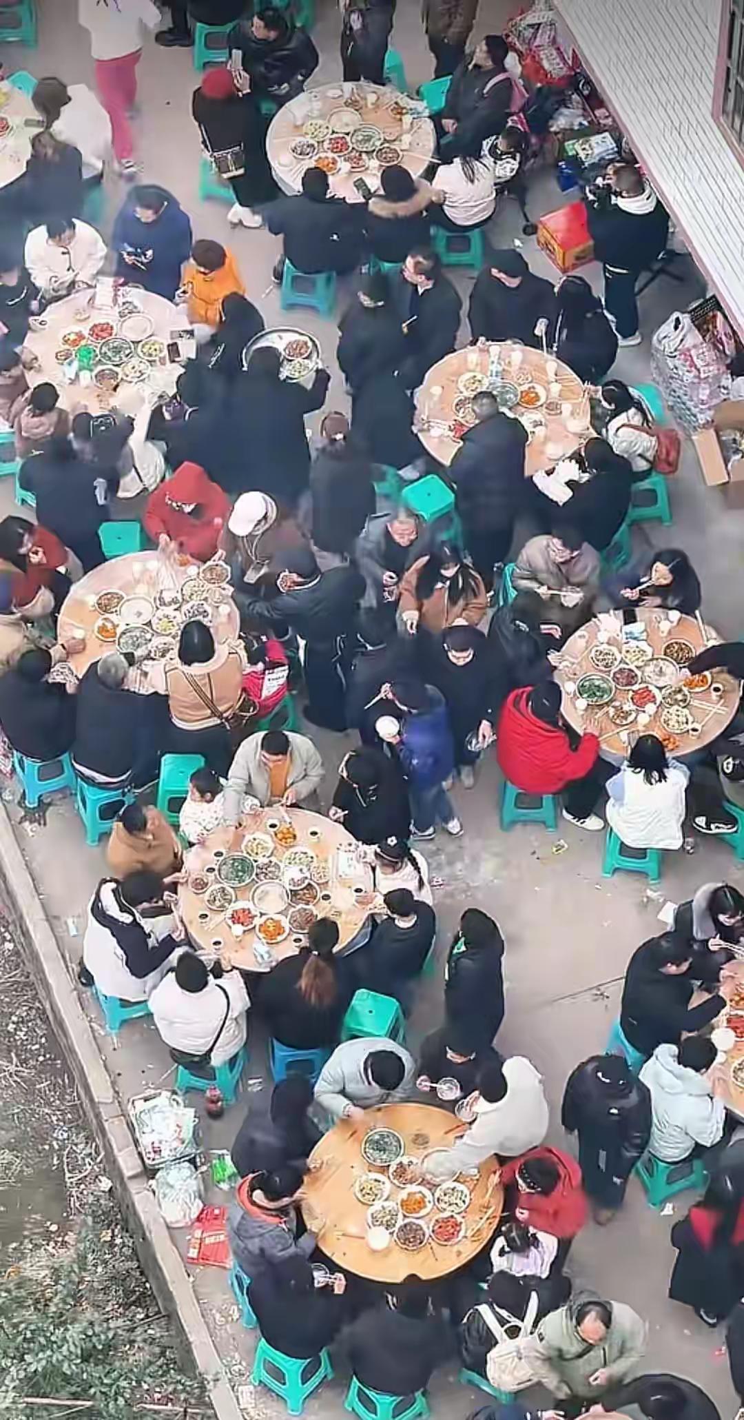 原本计划的两头猪,在汹涌人潮面前杯水车薪,最终当地文旅部门也紧急支援两头、以五头猪的规模,勉强撑起了蔓延至田间地头的三百桌流水席