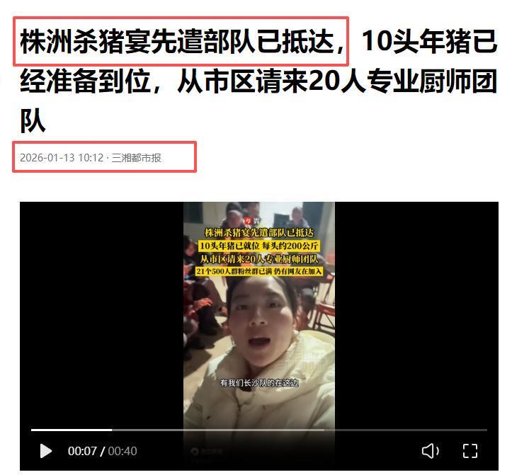 株洲杀猪宴先遣部队已抵达,10头年猪已经准备到位,从市区请来20人专业厨师团队---2026-01-13 ----三湘都市报