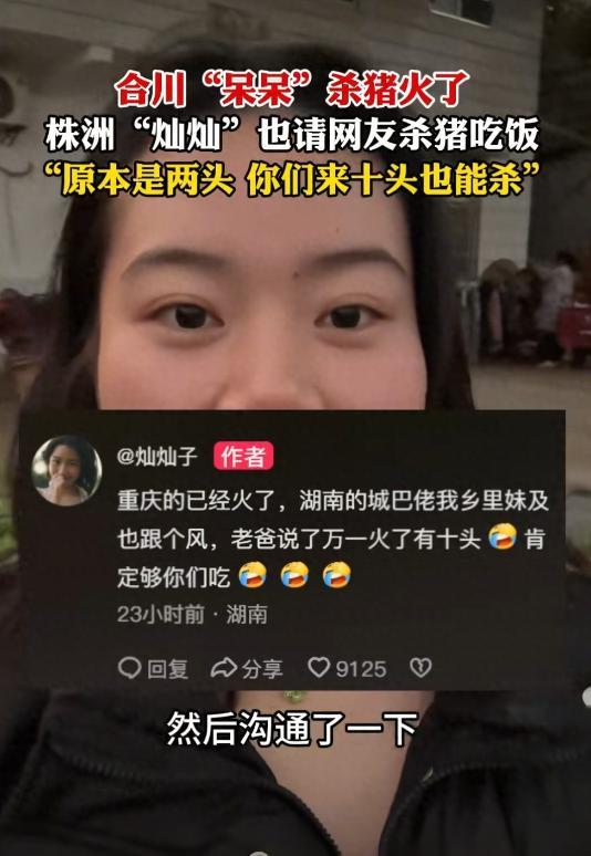 随着呆呆爆火,也让人不少人开始跟风杀猪,一开始还以为是玩笑话,但湖南株洲的“灿灿”还真接上这场乡土狂欢的接力棒。