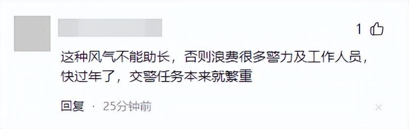 还有网友表示,这种风气不能助长,否则浪费很多警力及工作人员,快过年了,交警任务本来就繁重。